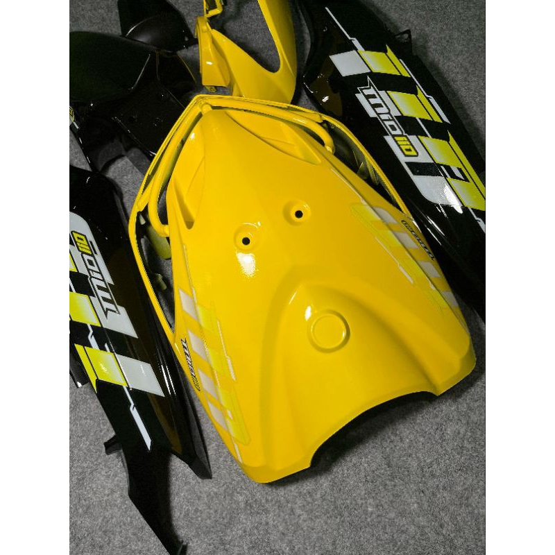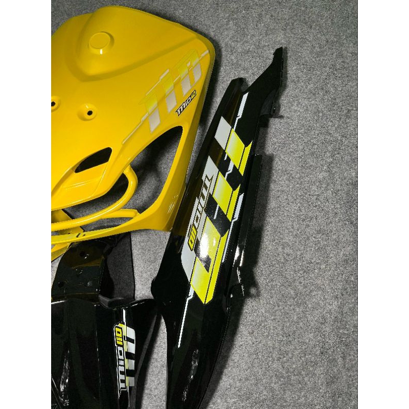 Cover ful body halus full bodi alus Yamaha Mio smile warna hitam mix kuning plus striping transparan Vietnam style