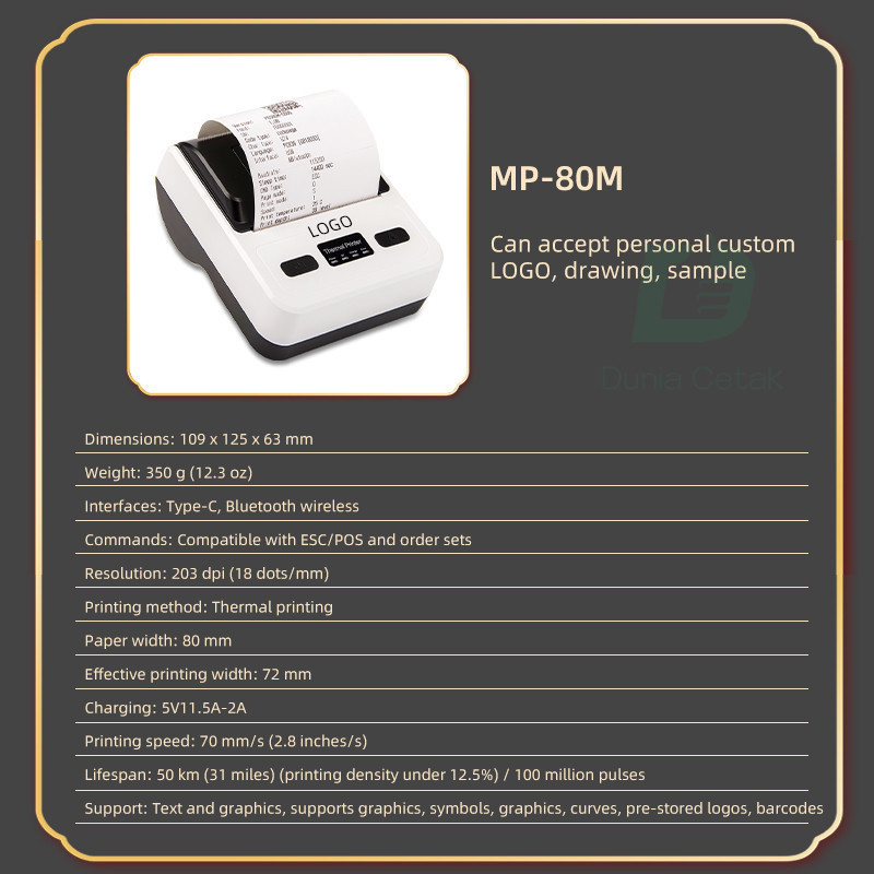 Printer Thermal 80MM Bluetooth + USB Cetak Resi Alamat Kasir Nota PPOB POS Bare Support Kertas