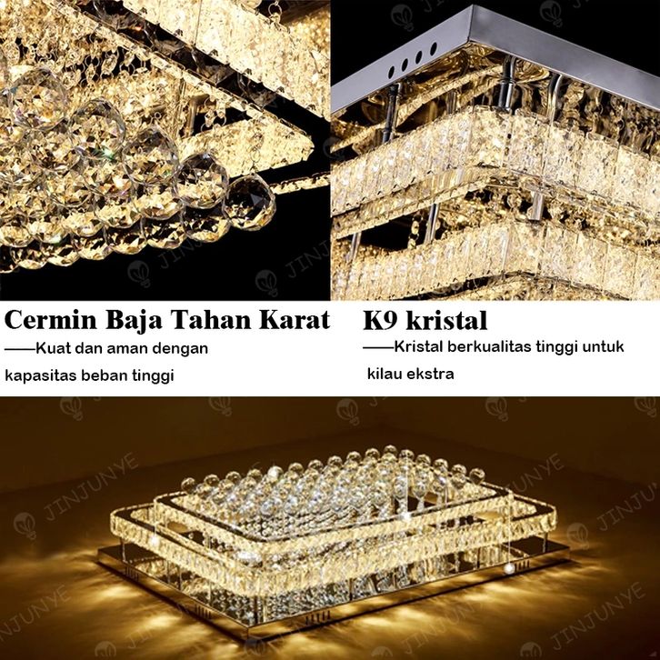 TERLARIS ✨Garansi&Estetik✨Lampu Gantung Kristal Mewah Modern Besar Ruang Tamu 3 Warna Lampu Kristal Plafon LED