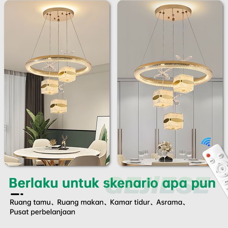 GROSIR GEJIESE Lampu Gantung Kristal Modern 72W LED 3Warna Dapat Disesuaikan Lampu Gantung Ruang Tamu Hias efacf