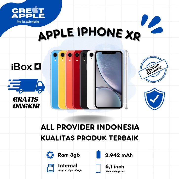 IPHONE XR 64GB/128GB/256GB FULLSET /BERGARANSI/LIKE NEW/HOT SALE/GARANSI IMEI 2 BULAN