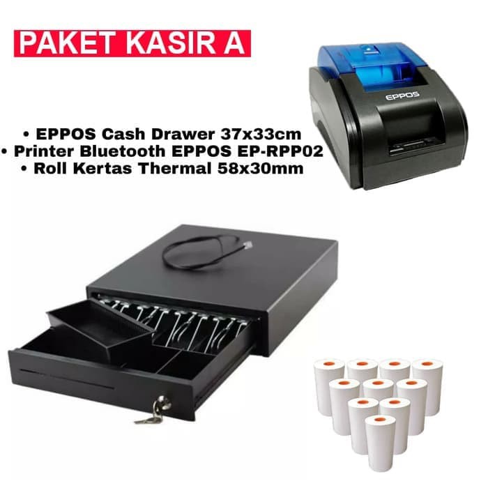 SMARTCOM Paket Kasir A Cash Drawer + Printer RPP02 + Kertas Struk 58mm