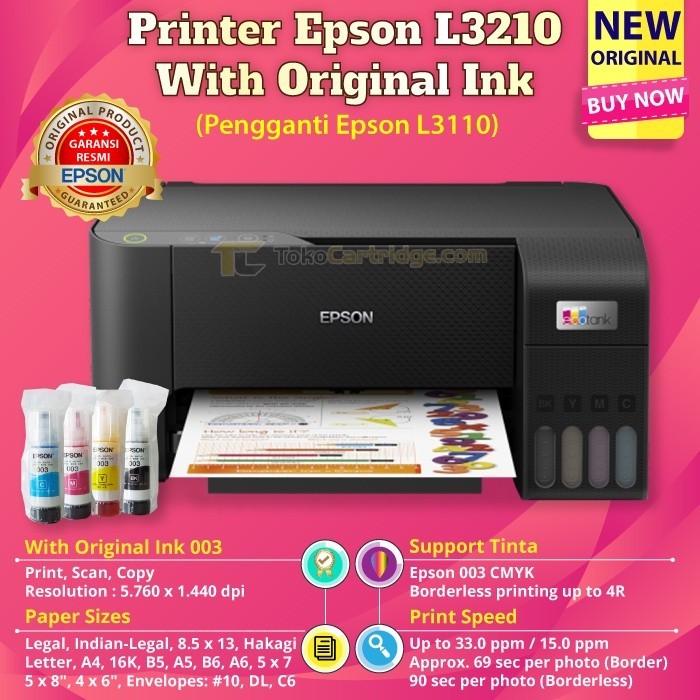 Printer Epson L3210 pengganti Epson L3110 All in One - Print Scan Copy Ink Tank Pabrik New Pengganti L360 L220 Prin