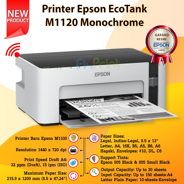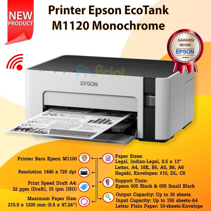 Printer Epson EcoTank M1120 Monochrome Wi-Fi Ink Tank Wireless A4 Garansi Resmi Bergaransi Original