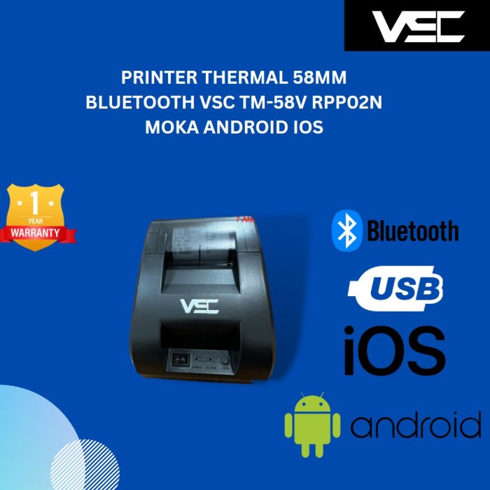 PRINTER THERMALH VSC TM-58V 58MM BLUETOOTH RPP02N ANDROID IOS