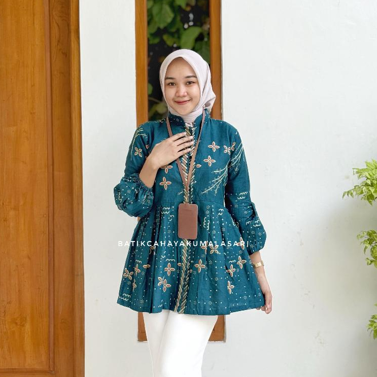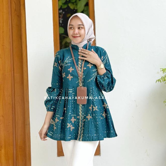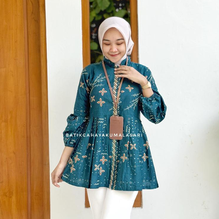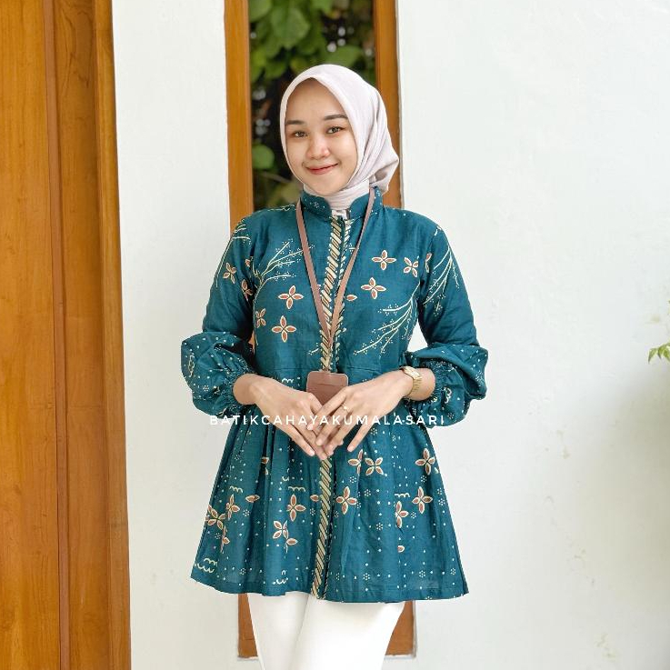 Blouse Batik Wanita Lengan Balon ARRUNA EMERALD - Atasan Kerja Wanita Bahan Katun Prima Solo