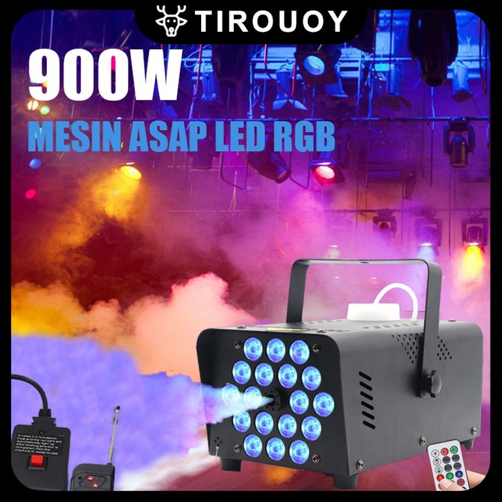 Mesin asap panggung 900W LED RGB portable asap warna warni lampu sorot panggung alat fogging Disko