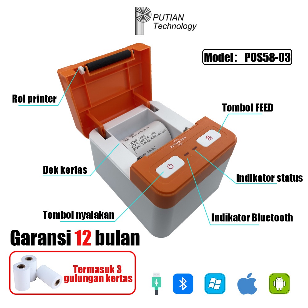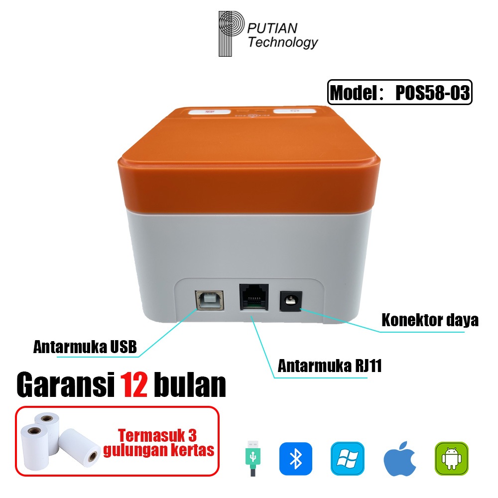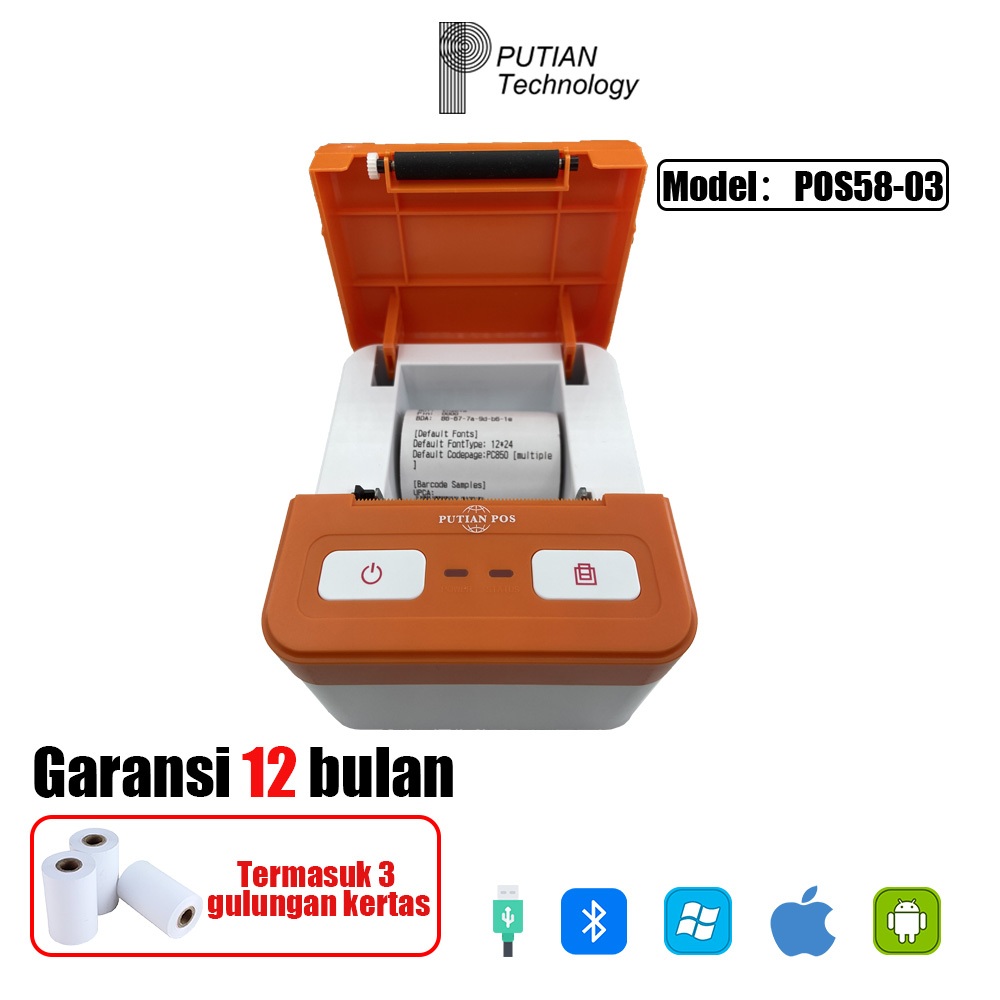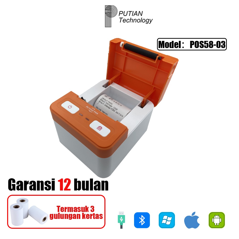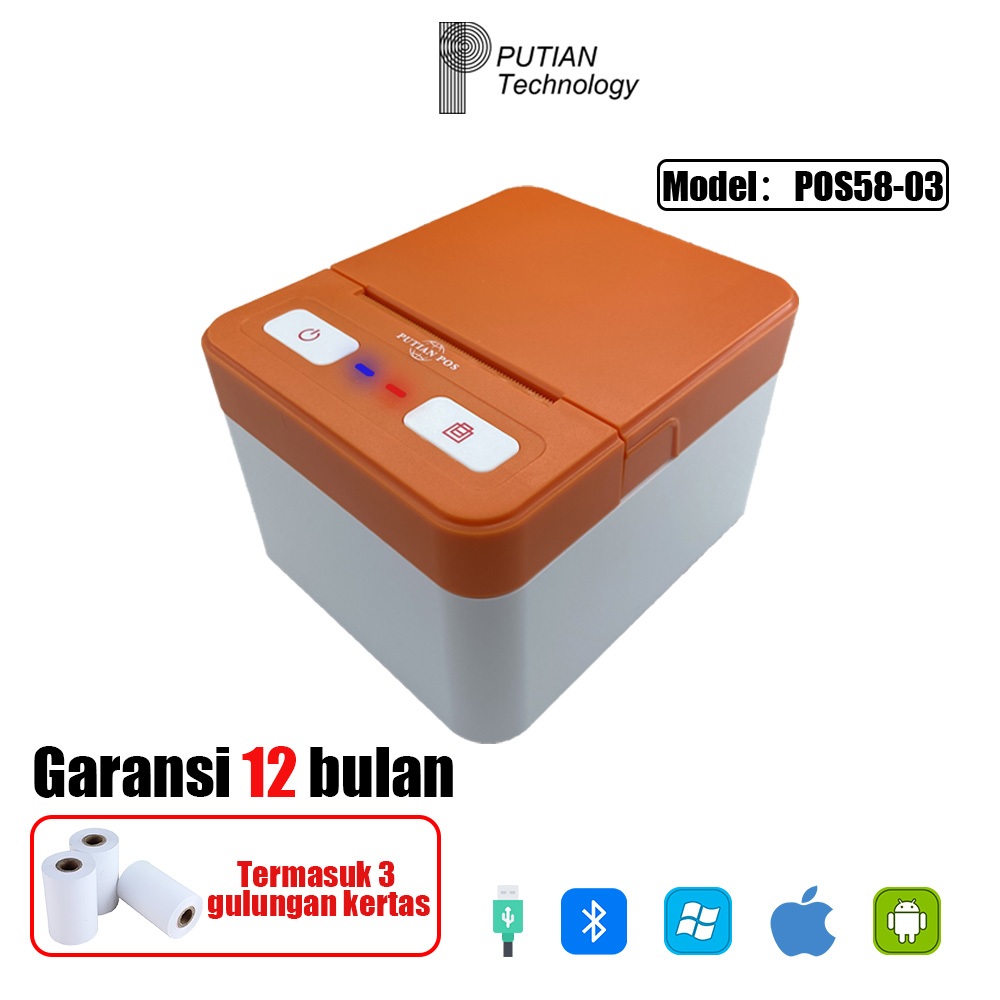 Printer termal desktop 58mm PUTIAN POS (bluetooth + USB) printer tanda terima kasir