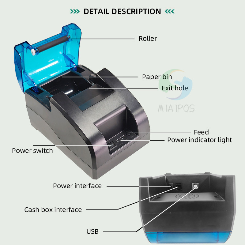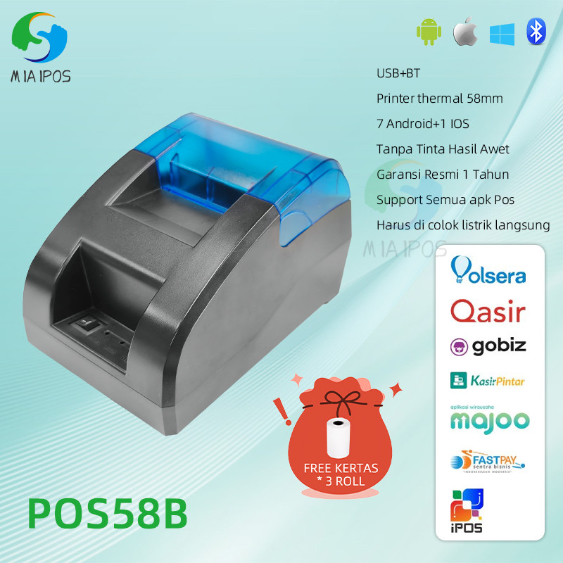Printer Thermal Bluetooth USB 58mm Dukungan Laci Sistem POS Printer Thermal 58mm 3Roll Kertas