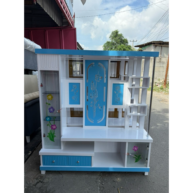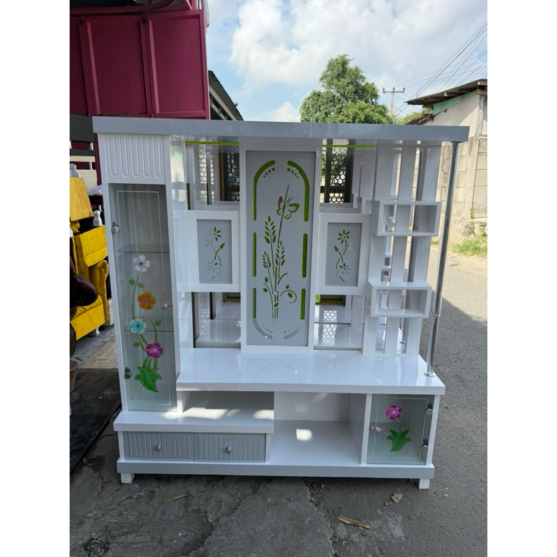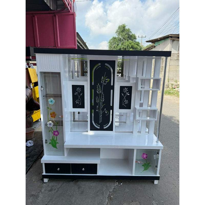 [Star] lemari pajangan ruang tamu BUPET TV SKETSEL UKIR ukuran 160x40x170 bahan multiplek terlaris