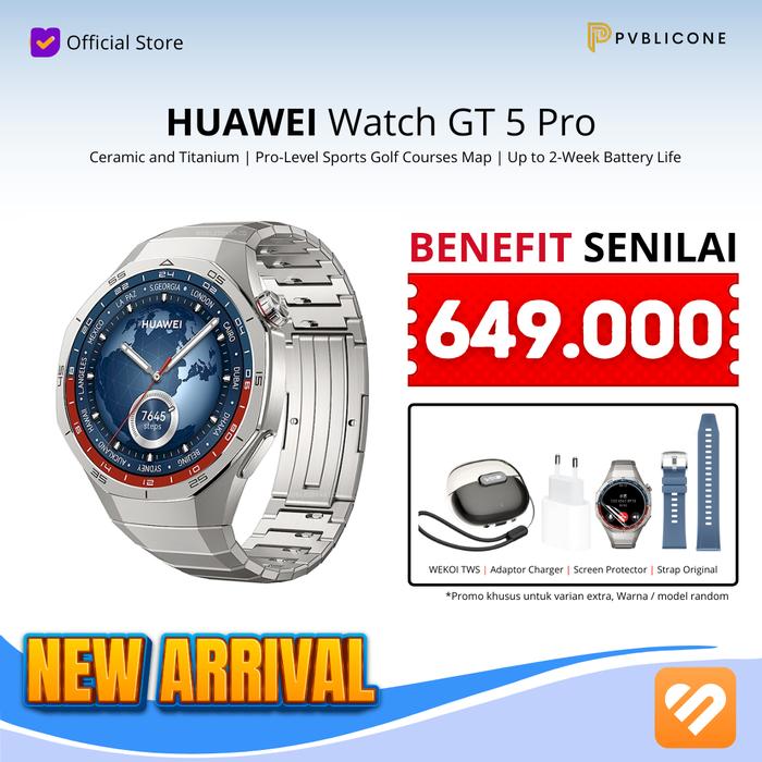 HUAWEI WATCH GT 5 PRO 46MM CERAMIC AND TITANIUM | PRO-LEVEL SPORTS GOLF COURSES MAP | UP TO 2-WEEK BATTERY LIFE GARANSI RESMI - PRO BLACK, SIMPLE