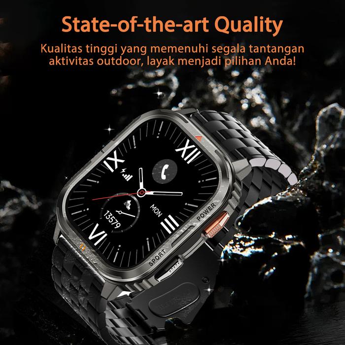 TIAZMI TANK X1 |AL SMARTWATCH BLUETOOTH CALL | 3ATM TAHAN AIR | JAM TANGAN WANITA PNA | JAM TANGAN MILITER | FITNESS TRACKER CERDAS BERBASIS AL TIMEVER - HITAM