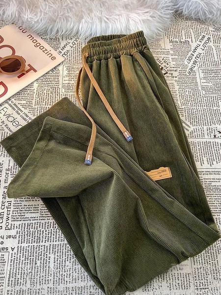 GDTIMA Casual Celana Corduroy Wanita Highwaist Straight Pants
