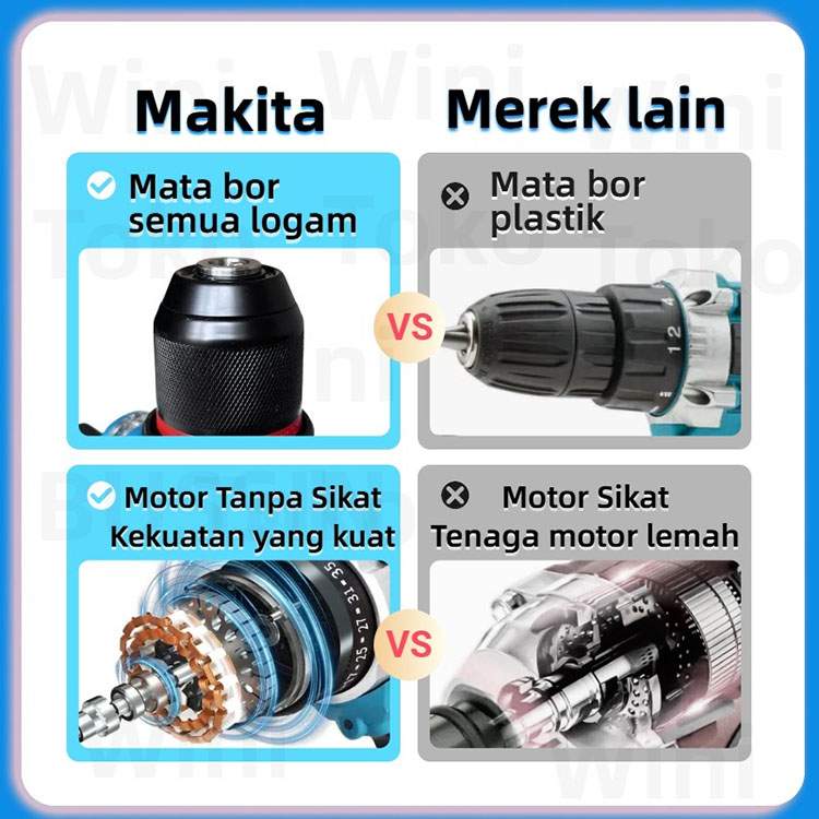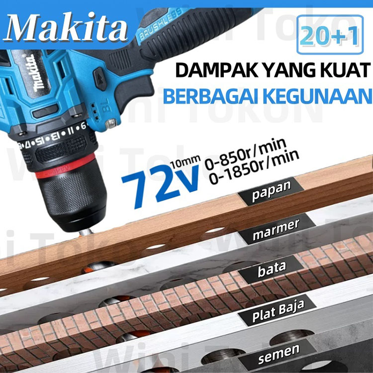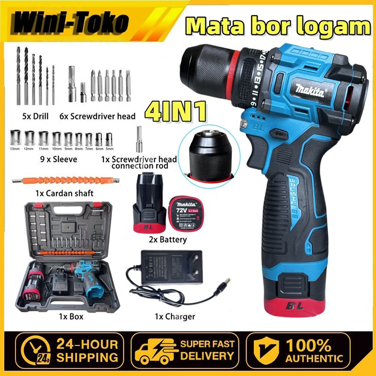 MAKITA Brushless Mesin lmpact bor 4 IN 1 bor Clevis Logam Mesin Bor Baterai Tangan Cordless Drill 2 Baterai