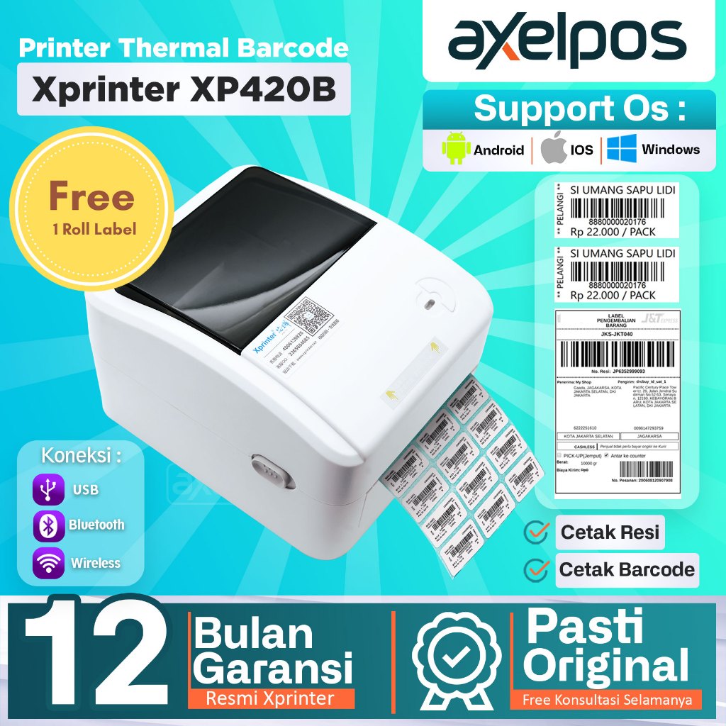Axelpos PRINTER BARE THERMAL LABEL XP-420B 110MM -A6 KONEKSI USB / USB - BLUETOOTH / USB - WIFI