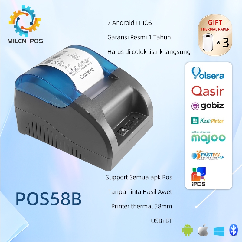 Printer Thermal Bluetooth USB 58mm Dukungan Laci Sistem POS Printer Thermal 58mm 3Roll Kertas