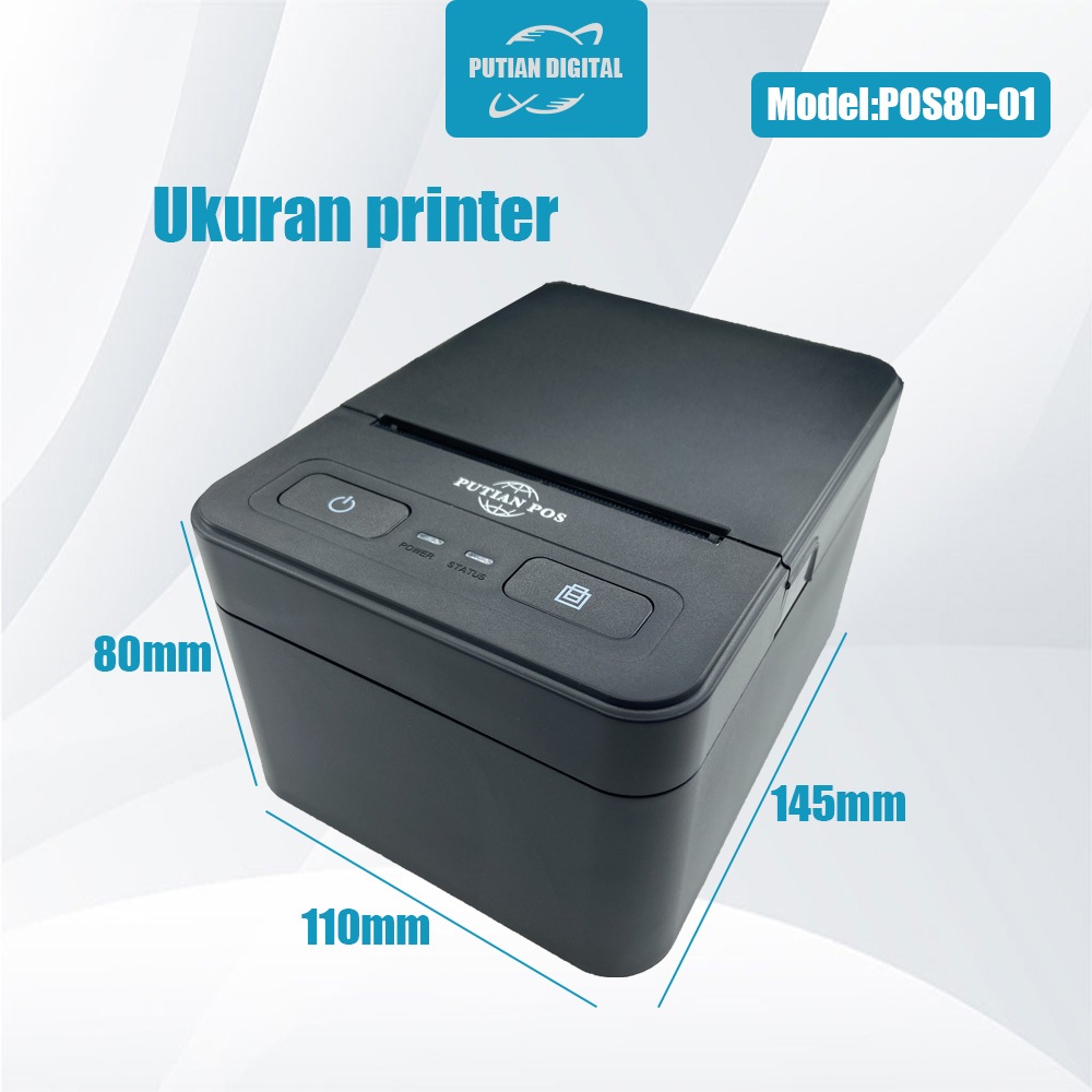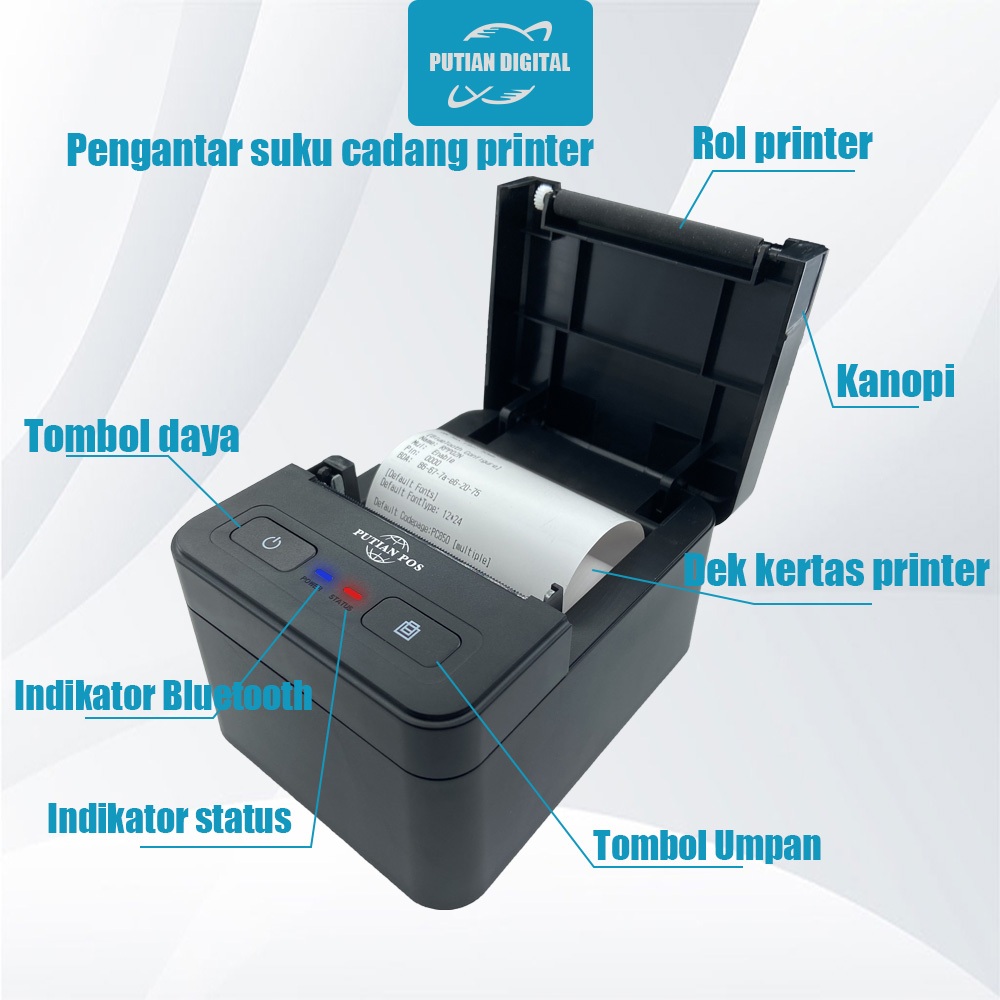 Desktop Bluetooth Thermal Printer PUTIAN POS POS80-01 80MM (Continuous Label Sticker + Bill) 2-in-1