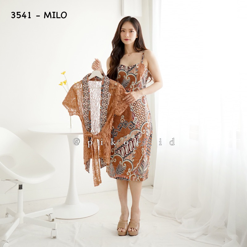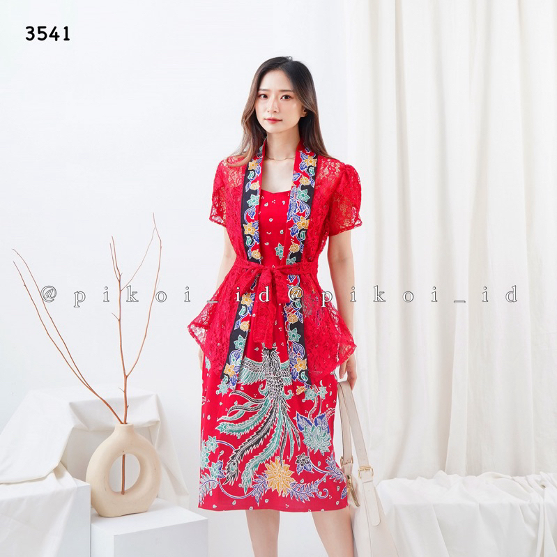 DRESS WANITA BATIK MODERN 2 IN 1 OUTER DAN DRESS DRESS KUTU BARU MODERN KONDANGAN KERJA 3541