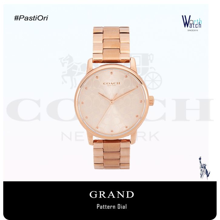 Jam Tangan Wanita Coach Grand Pattern Dial Rose Stainless Steel Original BNIB 35mm