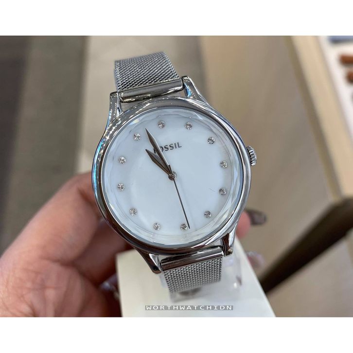 Jam Tangan Wanita Elegan Branded Laney White Dial Stainless Steel Mesh Bracelet Strap Original BNIB 34mm