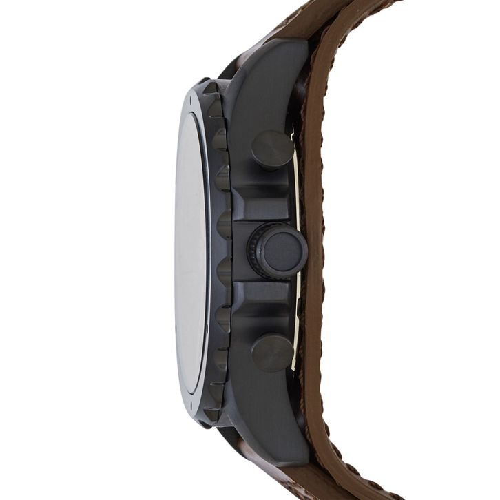 Jam Tangan Pria Sporty Nate Chronograph Dark Brown Leather Strap Original BNIB 46mm