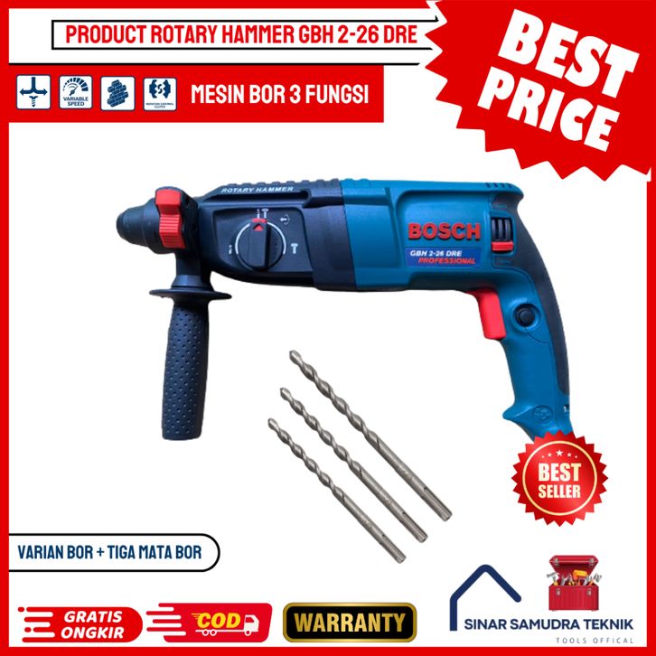 FLASH SALE BOR BETON BOSCH 2-26 DRE 3 FUNGSI ROTARY HAMMER (MESIN BOBOK)