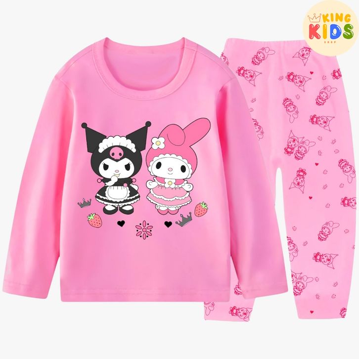 Piyama baju tidur lengan panjang anak perempuan ukuran 1-10 tahun motif KUROMI MELODY SANRIO