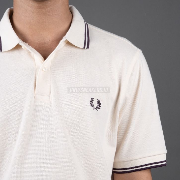 FRED PERRY TWIN TIPPED POLO DARK BROWN CREAM