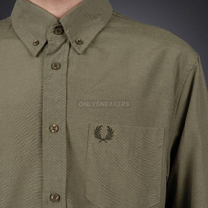 FRED PERRY OXFORD LONG SLEEVE SHIRT LAUREL WREATH GREEN