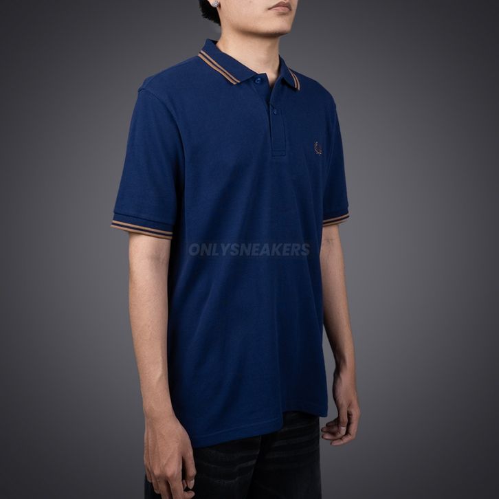 FRED PERRY TWIN TIPPED POLO CARAMEL DARK BLUE