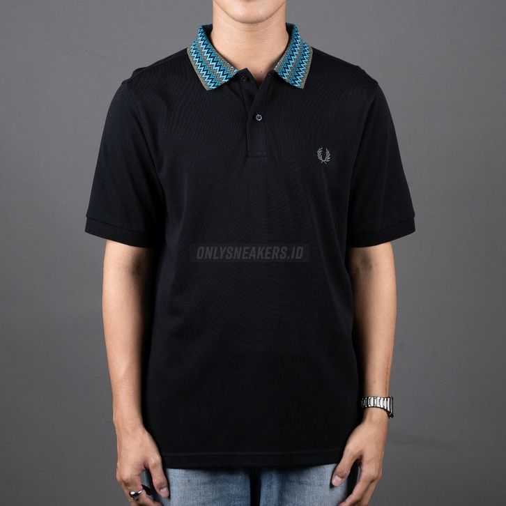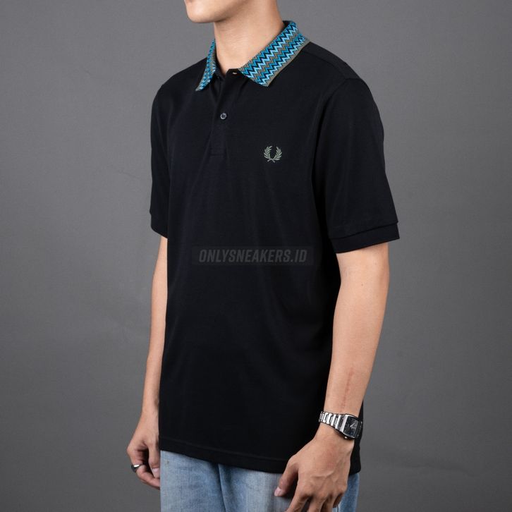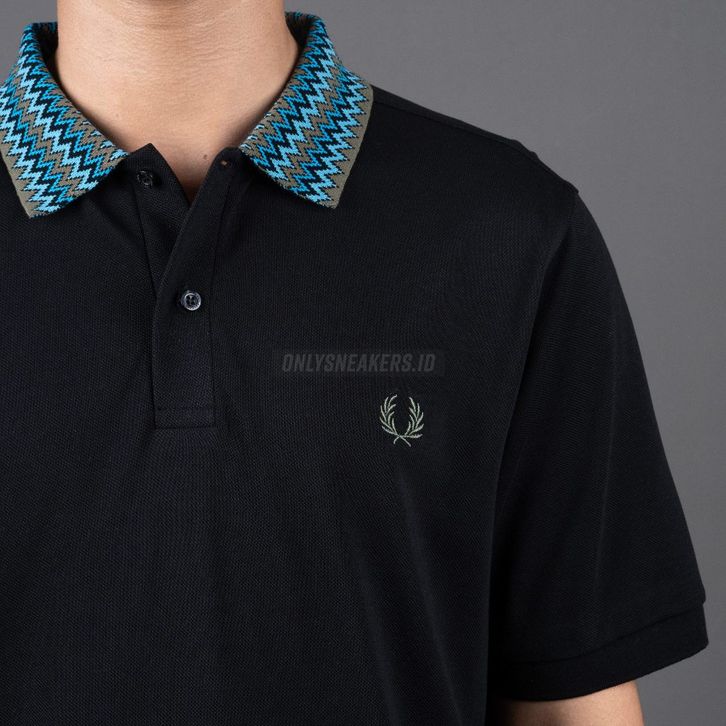 Fred Perry Jacquard Collar Polo Black S-XXL