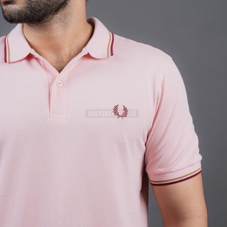 FRED PERRY TWIN TIPPED POLO MAROON BEIGE PINK
