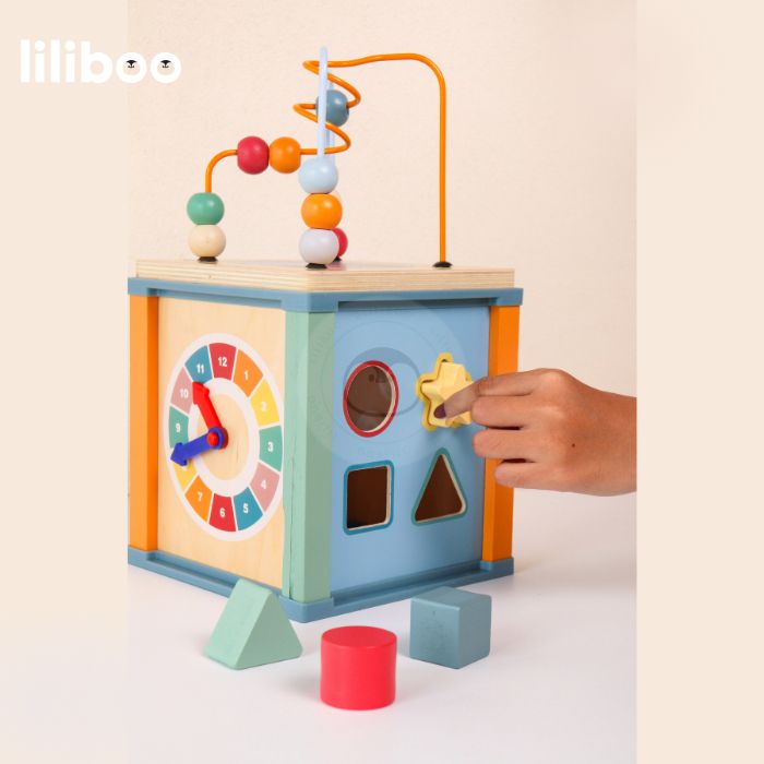 LILIBOO ETSU Mainan Edukasi Anak Montessori Kayu Activity Cube 5in1