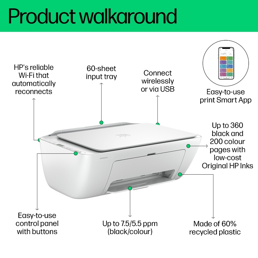 Printer HP 2875 Deskjet Print Scan Copy WiFi Cartridge Include TInta HP 682 Black Color ( Pengganti Printer HP Desk