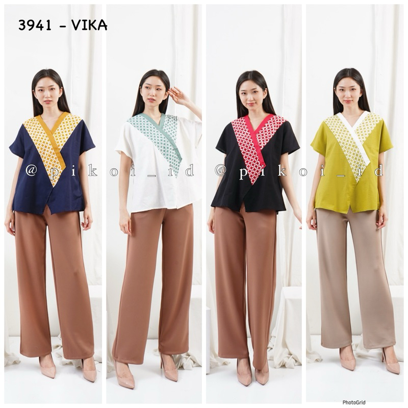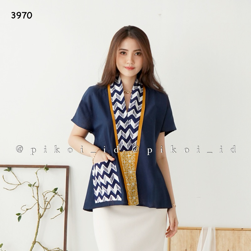 ATASAN BATIK WANITA MODERN BLOUSE BATIK LENGAN PENDEK T0P BATIK V NECK SERAGAM KANTOR MERAH 2484