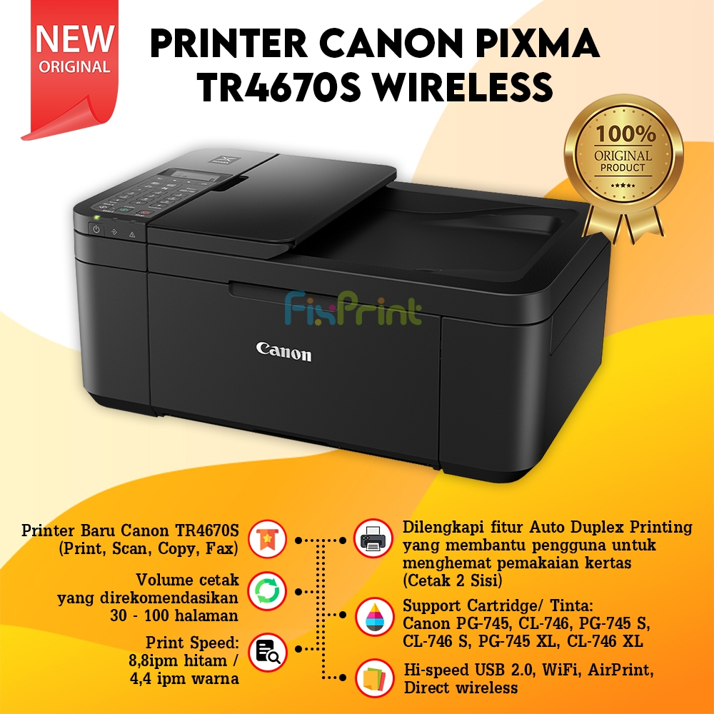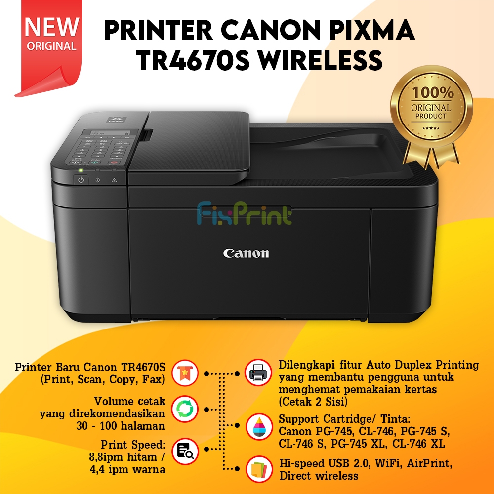 Printer Canon PIXMA TR4670S Wireless Wifi Print Scan Copy All in One Multifungsi New Garansi Resmi Original Penggan