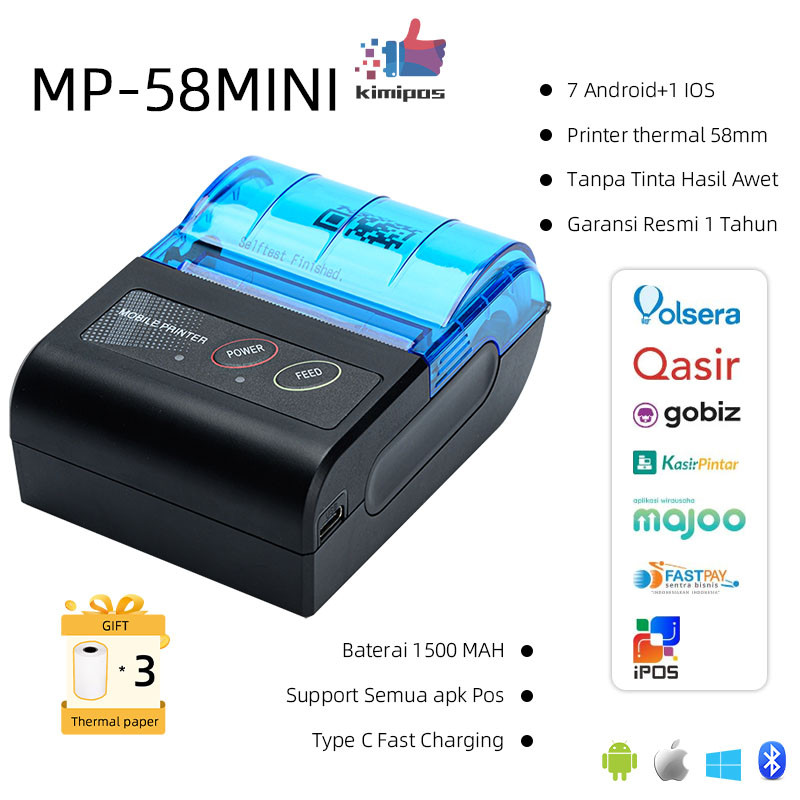 Printir Penerimaan Penjualan Handheld Mobile Portable Thermal - Android iOS Windows Bluetooth 58mm Printer Gratis K