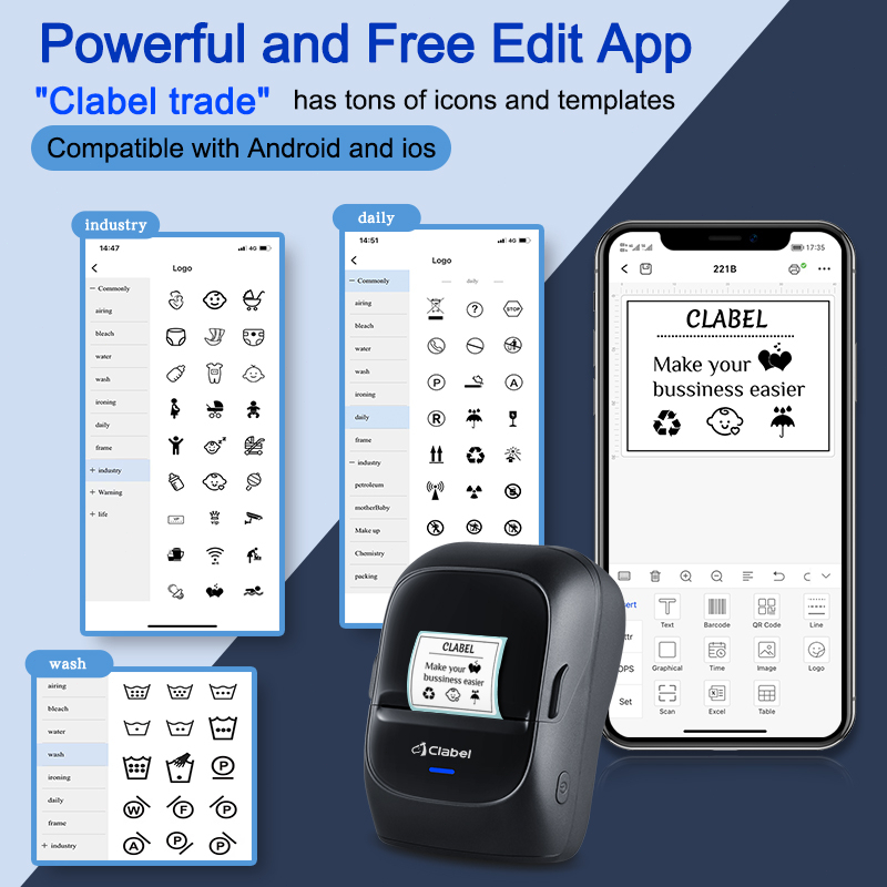 CLABEL 221B printer bluetooth mini,Tanpa Tinta,Portabel printer thermal,bare /kode QR/label/pola