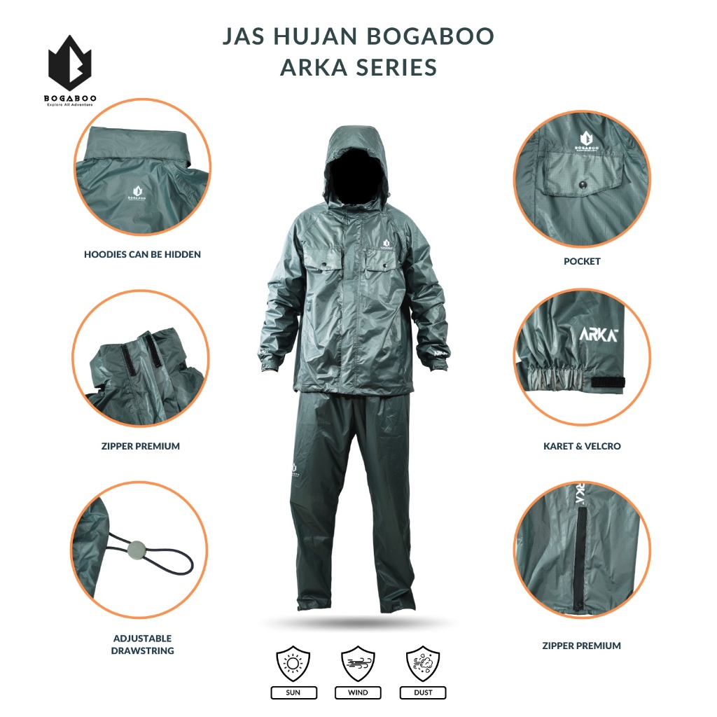 Jas Hujan Setelan Bogaboo SERI ARKA - Raincoat - Mantel Hujan Motor- Baju Dan Celana - Ponco - Mantol Gunung