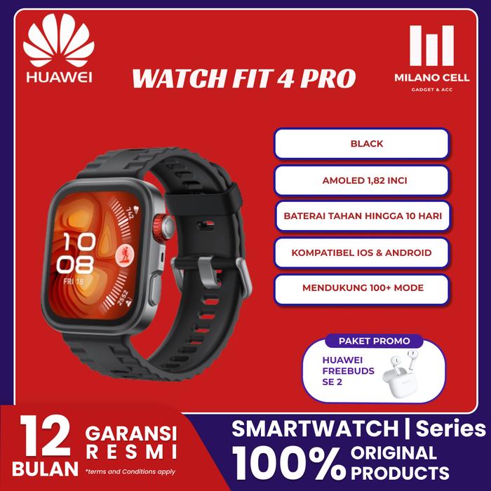 HUAWEI WATCH FIT 4 PRO - WATCH FIT 4 | STYLISH DESIGN | GPS | 10-DAY BATTERY LIFE | SPORTS TRACKING | HEALTH MANAGEMENT GARANSI RESMI - FIT 4 BLACK, ONLY