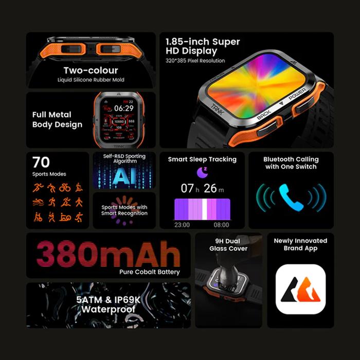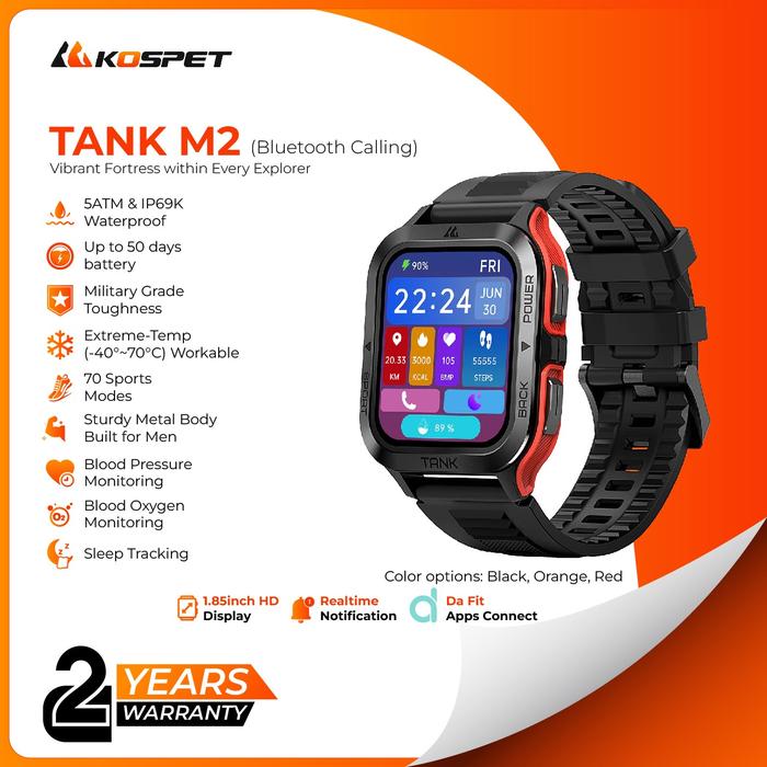 KOSPET TANK M2 RUGGED SMARTWATCH AMOLED SPO2 JAM TANGAN PRIA - BLACK
