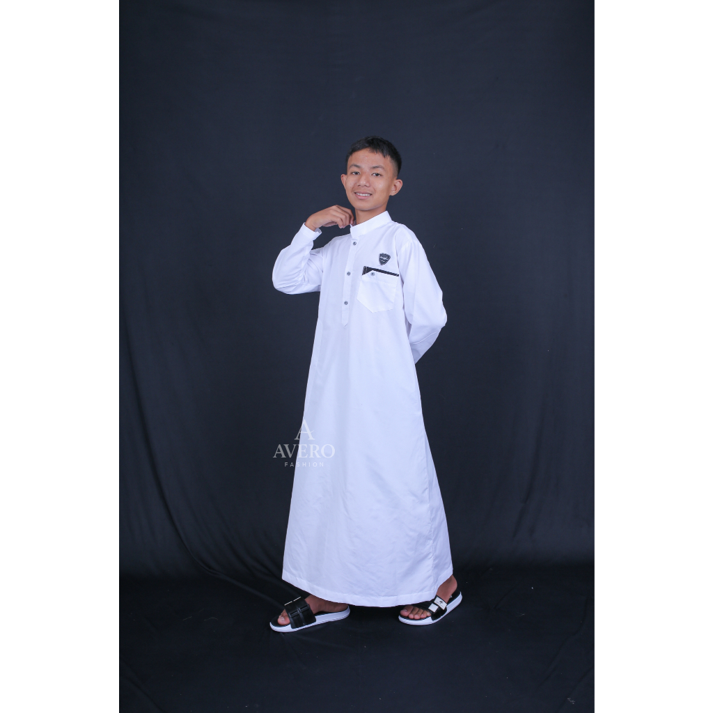 Jubah Anak Laki-Laki Putih Premium – Gamis Lengan Panjang Usia 10–16 Tahun