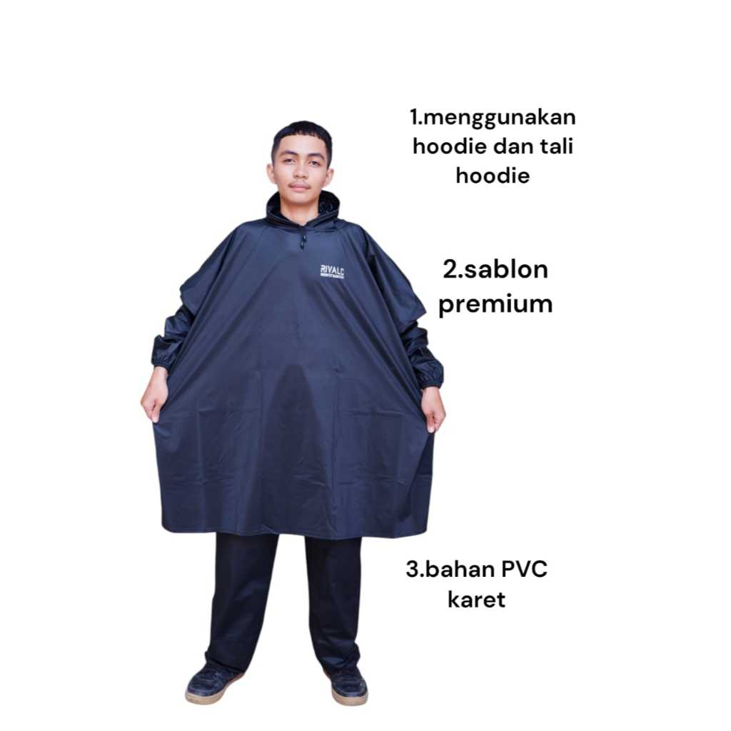 JAS HUJAN SETELAN PONCO + CELANA JUMBO PRIA WANITA PVC 0,25 CREAM TERBAIK BY RIVALD