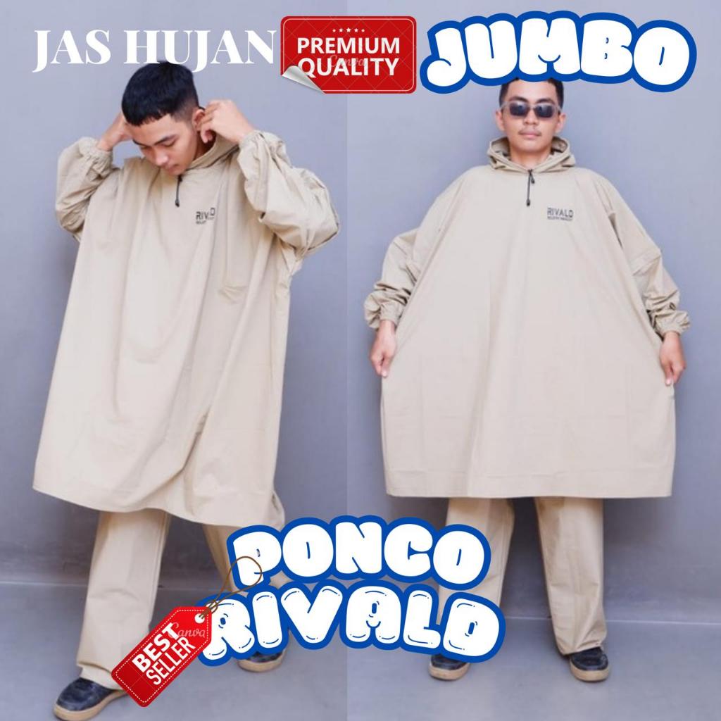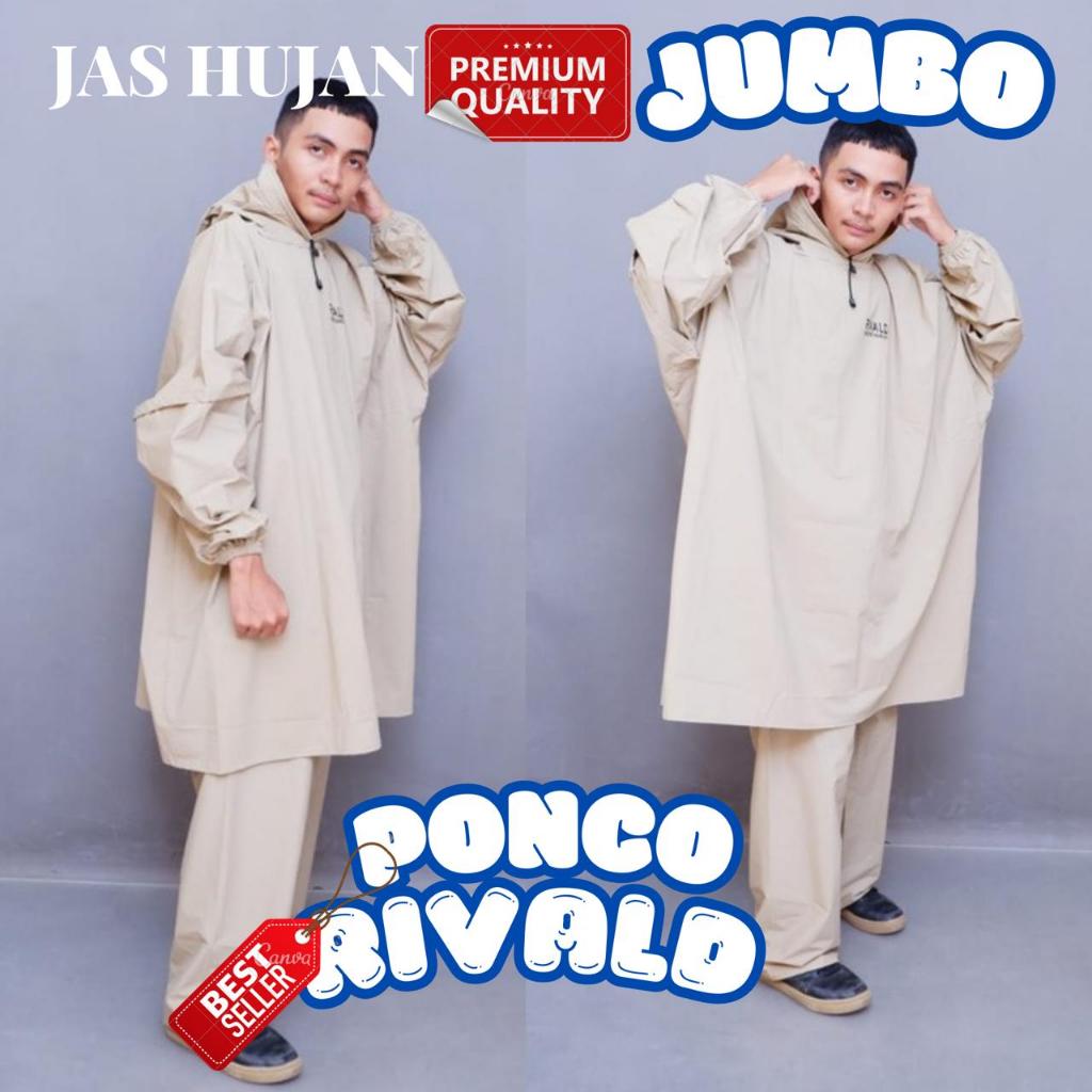 JAS HUJAN SETELAN PONCO + CELANA JUMBO PRIA WANITA PVC 0,25 CREAM TERBAIK BY RIVALD