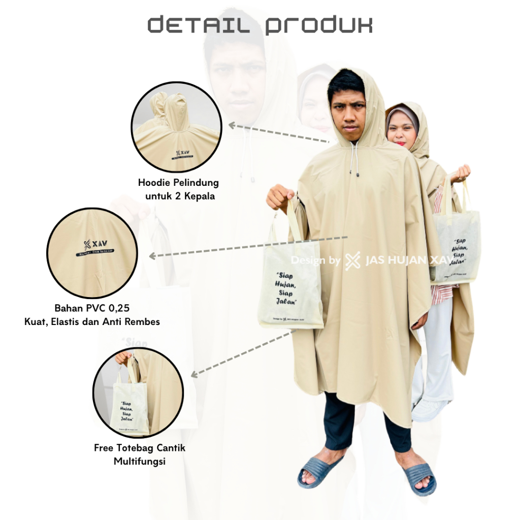 Jas Hujan XAV Kelelawar 2 Kepala Jumbo Ponco 2 In1 Dua Orang Pria Wanita Tebal Anti Rembes
