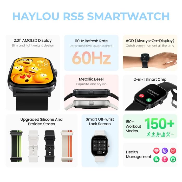 HAYLOU RS5 LS19 SMARTWATCH 2.01" AMOLED AOD BT CALL SPO2 IP68 METALLIC - BLACK