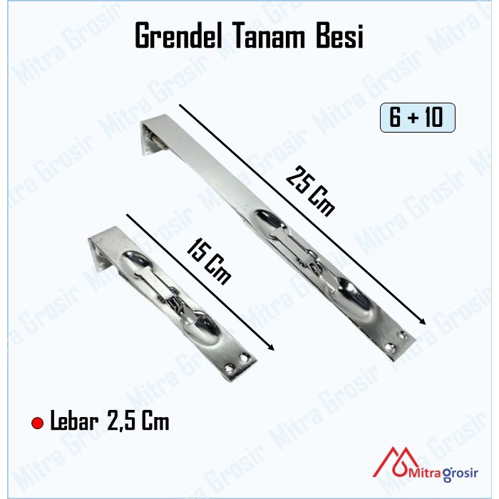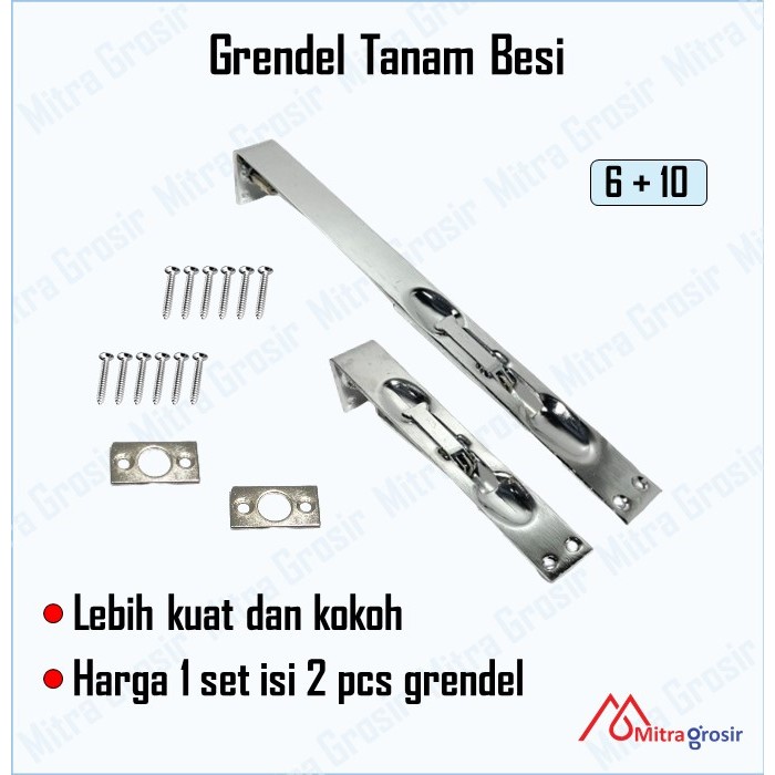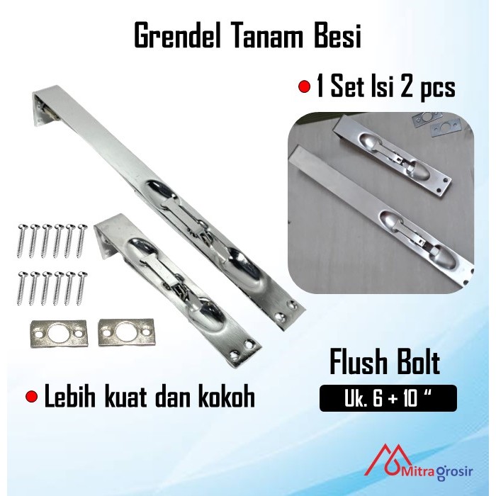 Grendel Tanam Set 6+10 L Slot Pintu L Flush Bolt L Selot Untuk Pintu 2 Kupu Tarung