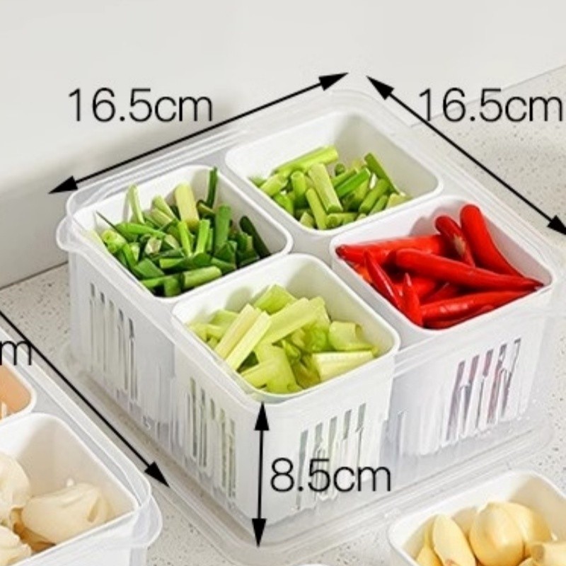 4 Sekat Kotak Saringan Wadah Bawang 4 Sekat Tempat Buah Sayuran Bumbu Dapur Dengan Penutup