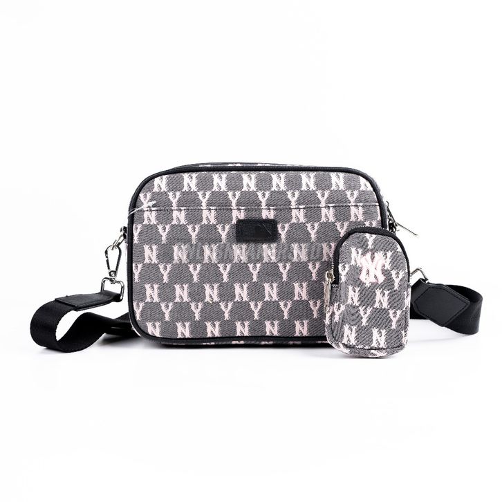 MLB NEW YORK YANKEES MONOGRAM JACKQUARD HIP NAVY PINK CROSSBODY BAG