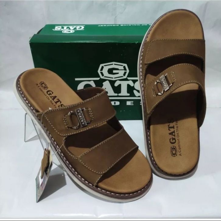 Sandal Kasual Pria Sendal Kulit Gats VT 302 - Brown